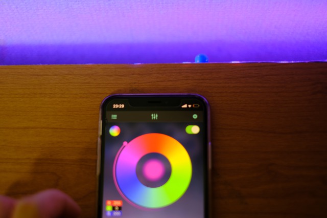 こちらのLEDテープライトもスマートフォンで色を調整することがでるんです。