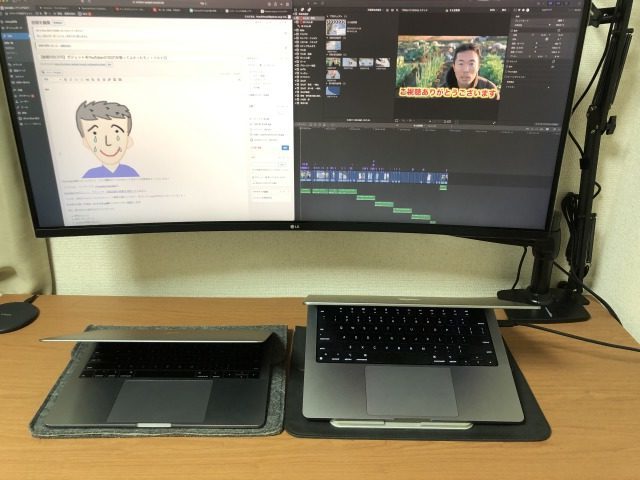 | メリット | 横面を3分割にしてもみやすい 横に長いので動画編集がしやすい コード1本でMacBookを充電できる |